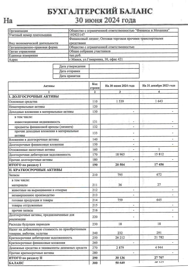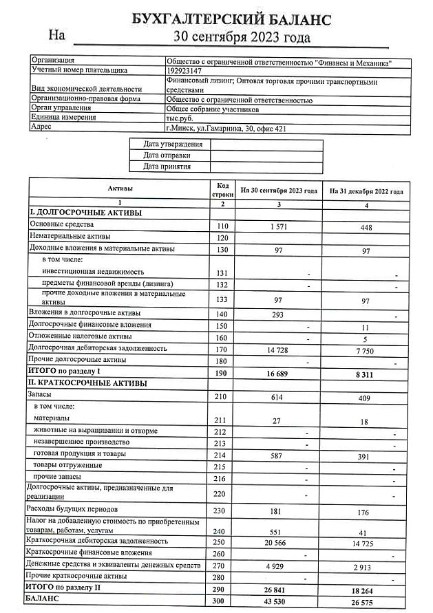 Документы для оценки финансовой устойчивости лизингополучателя